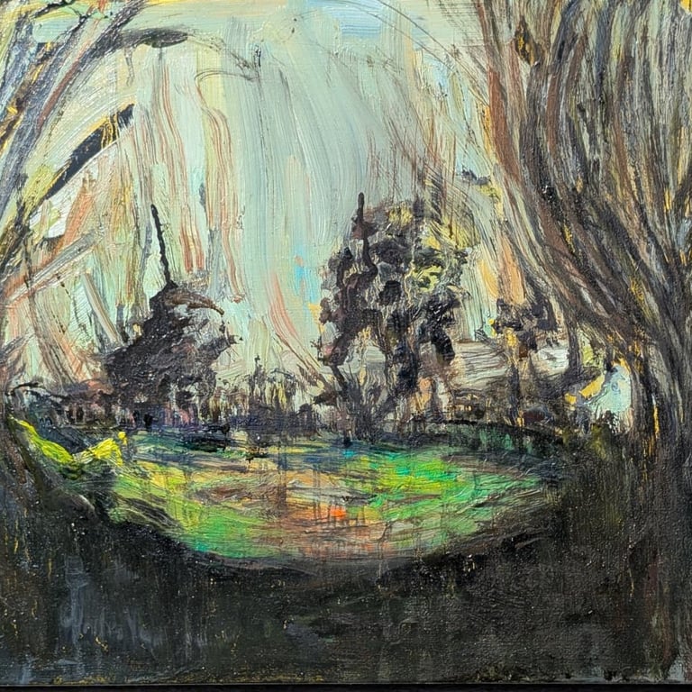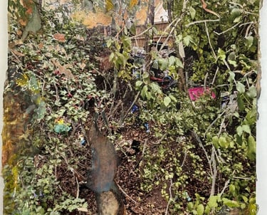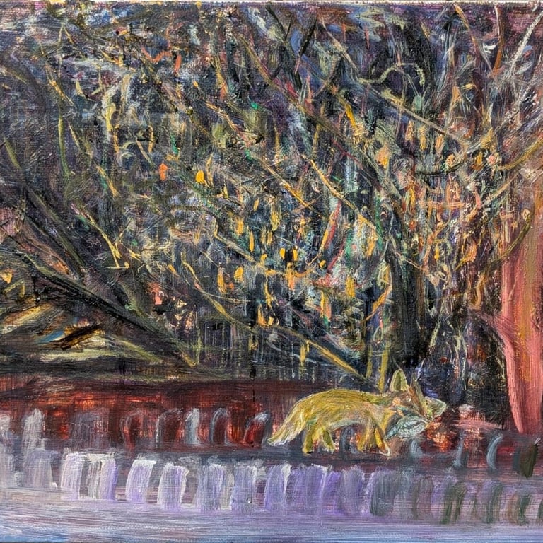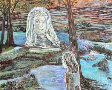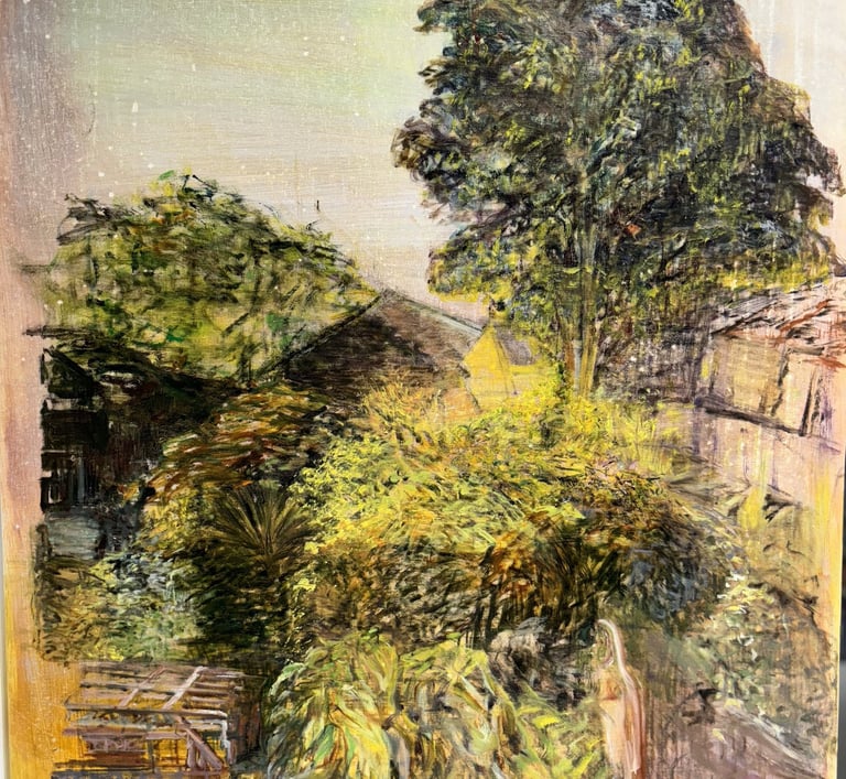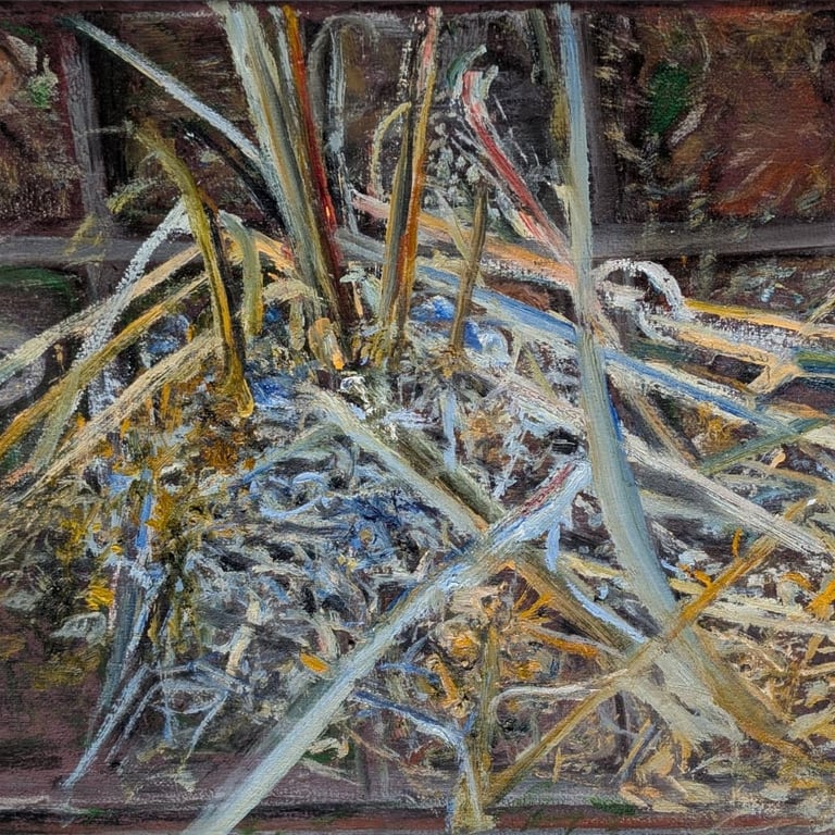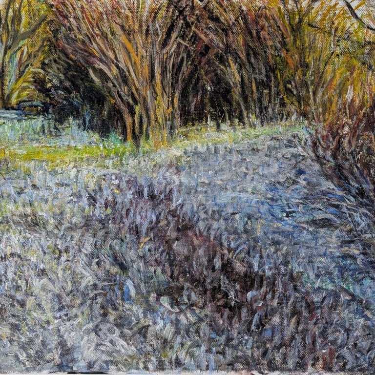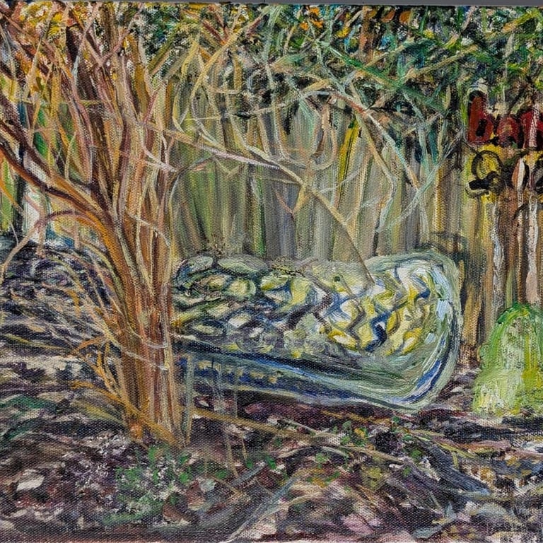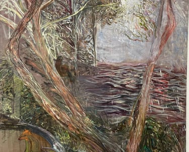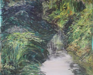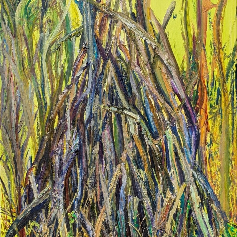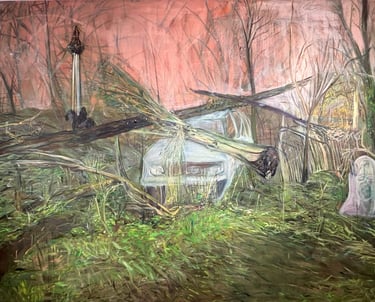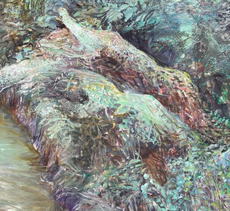 My paintings are a reconciliation with the act of painting as a collaboration with vibrant matter itself. These scrubbing scrublands and fluid spectres of modernity reveal the precariousness of visual meaning-making in a way that calls to mind N.J. Berrill’s cosmic reflections: